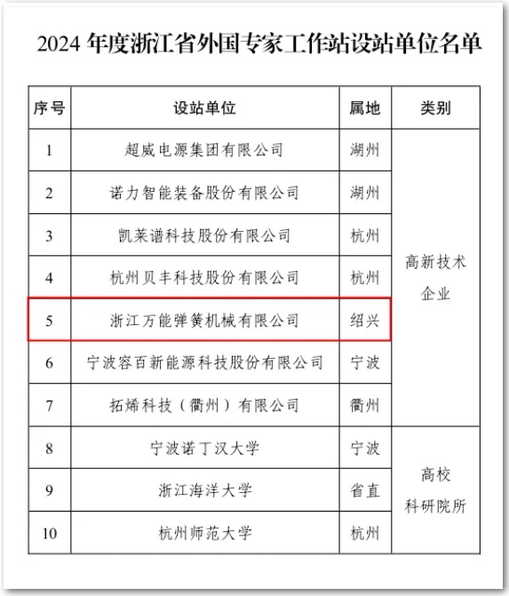 2024, Zhejiang Universal Spring Machinery Co., Ltd dihormati sebagai satu -satunya perusahaan yang dipilih di Shaoxing City, sekali lagi untuk Shaoxing City untuk memenangi kehormatan. Pencapaian ini bukan sahaja mengesahkan inovasi teknologi dan strategi pembangunan antarabangsa syarikat, tetapi juga menandakan langkah baru dalam daya saing global.